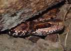 朽木や落ち葉の下などにすみ、主に夜活動して昆虫などを食べます。毒牙を持ち、人が触れると身を守る為に咬みつくことがあります。咬まれると激痛があり、赤く腫れ、痛みが1週間以上続く場合や、発熱する場合もありますが、命に関わる事はありません。 |