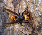 スズメバチの仲間には、攻撃的なものもおり、特にオオスズメバチは、毒が強く攻撃性も最も強いため恐れられています。また、スズメバチの事故で最も被害が多いのは、キイロスズメバチです。 |