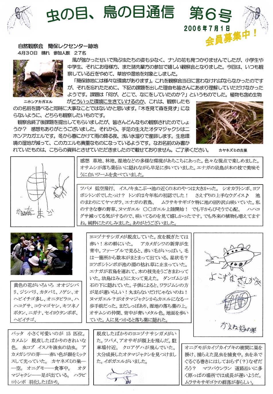 三国丘陵の自然を楽しむ会 会報 『虫の目、鳥の目通信第6号』