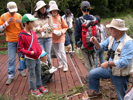 【大塚俊樹さんの紹介】 野遊びの達人です。身近な野草も、ナイフ一本で、あっという間にいろいろな遊び道具に変身。子供たちにも大好評です。野鳥などについても詳しく、いろいろな場で活躍されています。 ナイス福岡の事務局長でもあり、ナイス福岡会報「くすのき」では、「自然の味・懐かしき味」を連載されていた他、「鎮守の森と自然」などの観察会を企画されています。 |