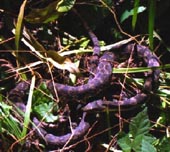 マムシとヤマカガシについて紹介します。 保護色をしている為、野外では気付きにくいので、ヘビが出そうな草地・やぶ林の中などを歩く際には、「長靴を履く・歩く前に棒などでヘビがいないか確認する」などの対策が必要です。また、岩の間や倒木の陰に潜む場合も多く、その中にむやみに手を突っ込むのは危険です。見かけても「不用意に近づく・踏む・つかむ」などをしなければ、まず攻撃されません。 ・マムシ ・ヤマカガシ |