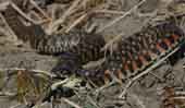 朽木や落ち葉の下などにすみ、主に夜活動して昆虫などを食べます。毒牙を持ち、人が触れると身を守る為に咬みつくことがあります。咬まれると激痛があり、赤く腫れ、痛みが1週間以上続く場合や、発熱する場合もありますが、命に関わる事はありません。 |