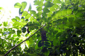 山野に生える落葉樹です。枝先に集まった、細長い卵型のような葉が特徴で、秋になると紅葉します。ウルシオールを含み、全ての人が必ずかぶれるわけではありませんが、樹液に触れたり、時には雨の日に下を通ったりすると皮膚炎を起こすことがあります。皮膚が弱い方は、近くを通っただけでかぶれることもあります。帽子・長袖シャツ・手袋などを着用して肌の露出を避け、近づかないようにして下さい。 かぶれた際の応急処置は、患部を水洗いし、抗ヒスタミン剤含有のステロイド軟膏(注意1)を塗り、冷水や濡れタオルなどで冷やして下さい。ハゼノキの仲間に触れた手や、患部に触れた手で他の場所を触ると、かぶれが広がるので注意が必要です。かぶれがひどい場合は、かぶれた原因を確認し、皮膚科で治療を受けて下さい。 |